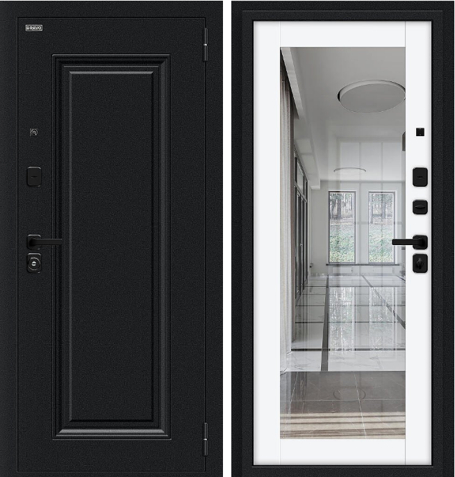 Входная дверь с зеркалом эконом сегмента, оснащена замками «Бордер» высшего класса взломостойкости. Изнутри МДФ панель толщина 22 мм, Эко Шпон, зеркало Reflex. Снаружи стальной лист с декоративным тиснением. Толщина металла 1.2 мм. Лист снаружи покрыт индустриальной полиэфирной порошковой краской голландского концерна AkzoNobel. Вес двери 63 кг. Толщина коробки 98 мм, а полотна 85 мм. Дверь отлично подойдет для небольшого бюджета, совместит ваши желания с возможностями. Купить двери с зеркалом Вы можете здесь на сайте выбрав размер и открывание, в описании укажите желаемый цвет внутренней панели. Профессиональная установка в подарок!