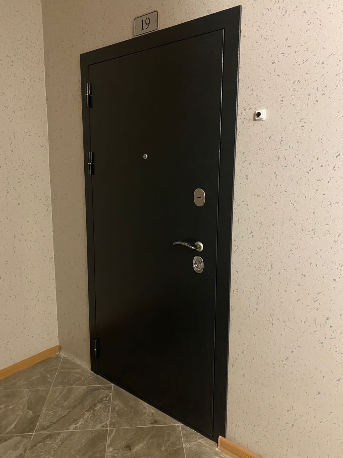 Толщина металла — 2 мм. Толщина двери по коробке — 95 мм. МДФ панель 16 мм. Три контура уплотнения. Два замка высшего класса взломостойкости. Наполнение минеральная плита высокой плотности. Снаружи атмосферостойкое покрытие Антик Черный. Габаритные размеры 870/970 на 2050 мм. Входная дверь по доступной цене, а качество не оставило равнодушным еще ни одного клиента. Так же данная дверь подойдет для установки в частный дом. Заказать дверь можно записавшись на бесплатный замер.